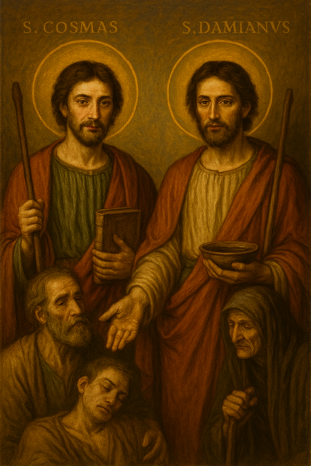 Today we honor Saints Cosmas and Damian—twin brothers, physicians, and martyrs—who lived in the third century and became known as the “Unmercenary Healers.” Why? Because they treated the sick without accepting payment. Their lives were a living sermon: mercy over money, healing over profit, faith over fear.